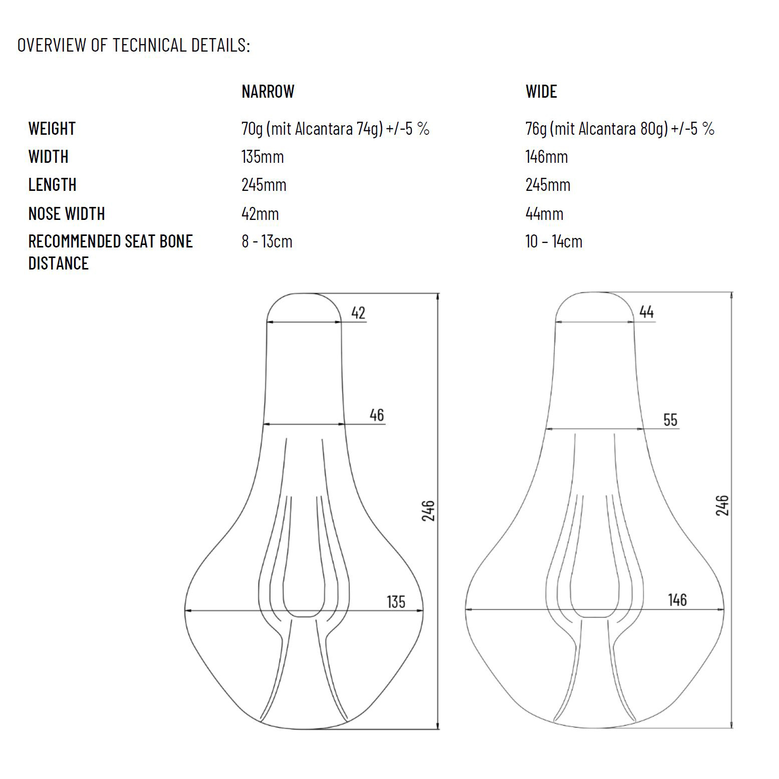 The raw carbon version weighs just 70 grams! If you want more grip, the saddle is also available with an Alcantara cover (+4g).
