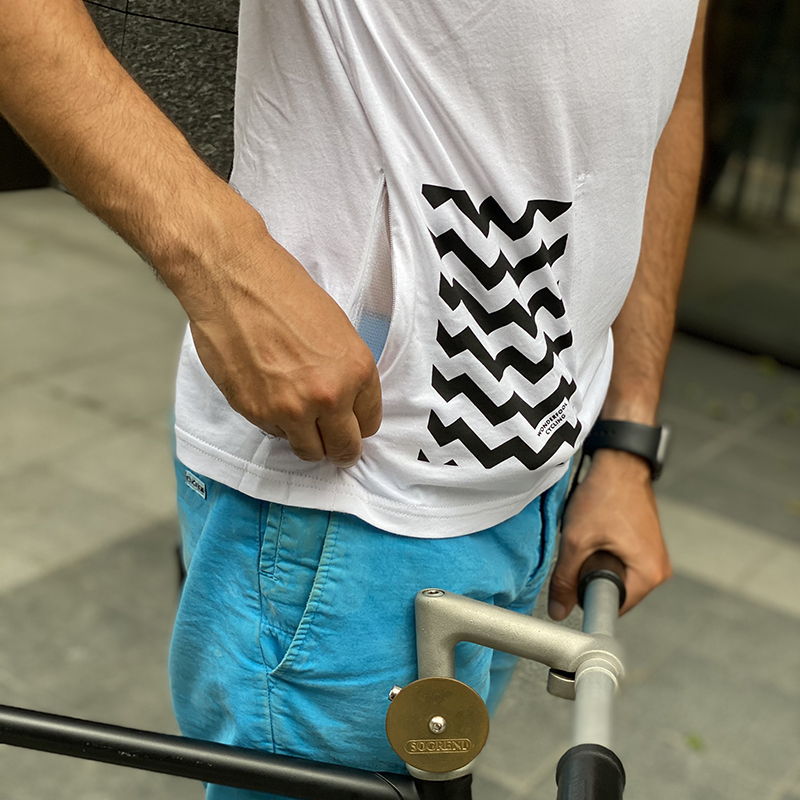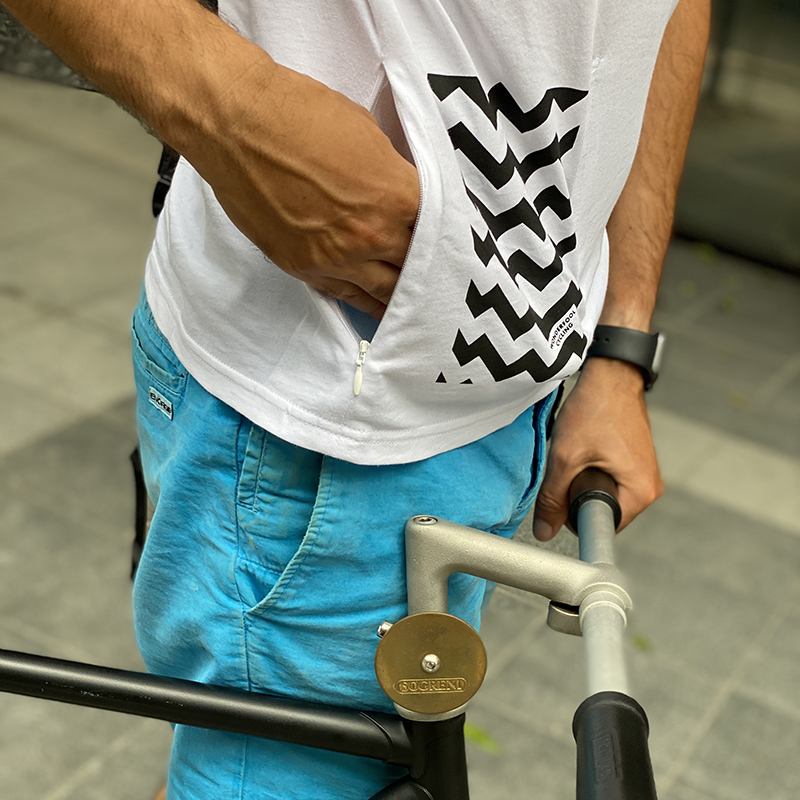 採用100%環保有機棉製造而成,貫徹EdWonder親近大自然的品牌哲學。舒適、親膚且不會因騎乘出汗而感到皮膚刺痛,適合夏日休閒穿著!正面醒目的橘色單車圖案,標誌著EdWonder Wonderfool騎行系列一貫的活力風格。右側特別的拉鍊小袋,可供放置隨身雜物,方便騎乘,充滿的騎行元素!