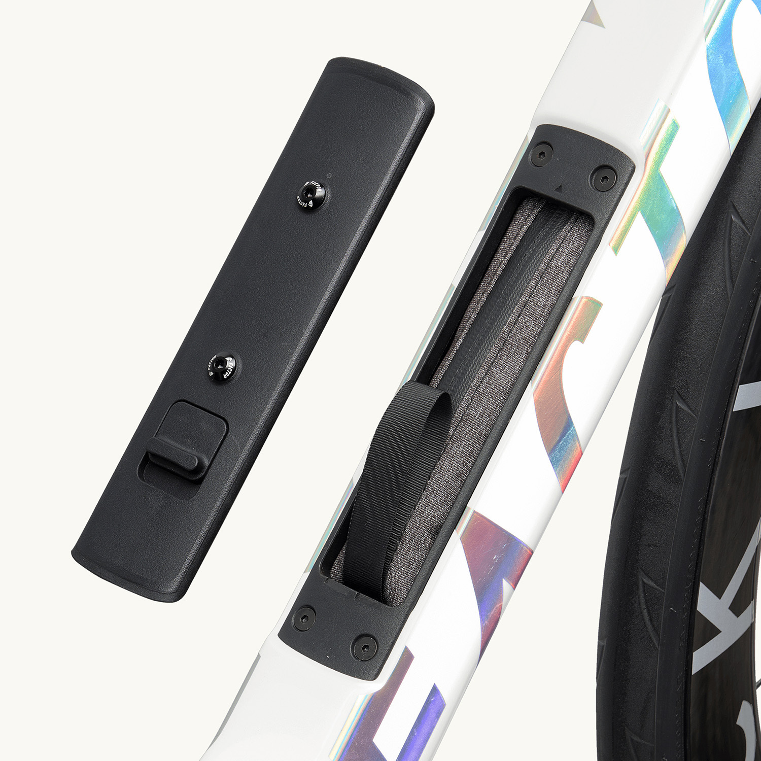 Integrated storage solutions, including in-frame storage bags and top tube nutrition boxes, offer convenient access to essentials during races.