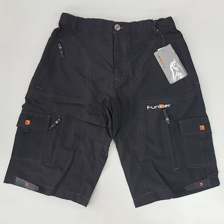 Funkier's baggy cycling shorts are designedwith both style and function in mind. We've built them from fabric that's waterresistant and added elastic in the back of the waist to make them easy to wear.These shorts also have additional laces so that further adjustments can be madeto the fit. The width of the legs can even be adjusted, thanks to a handyVelcro strap, and an elastic rib panel on the back makes it easy to move freelywhile on your bike. Reinforcement stitches throughout these shorts ensure thatthey will be very durable, and the numerous pockets in various shapes and sizesoffer enough storage space to take everything you need with you. All of thepockets have protecting flaps and either a zipper or Velcro seal.