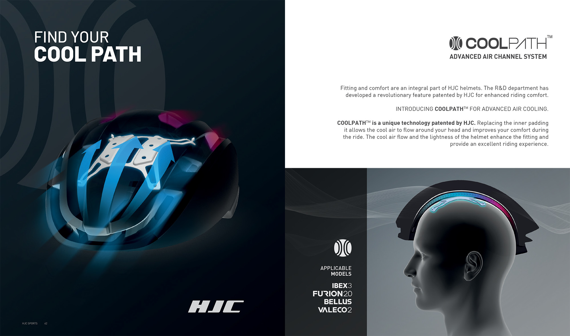 COOLPATHTM is a new technology replacing the inner padding, allowing the cool air to flow around your head and improving your comfort during the ride. The cool air flow and the lightness of the helmet enhance the fitting and provide an excellent riding experience.