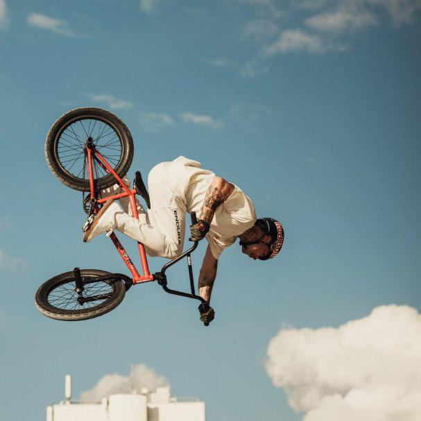 His creativity and fearless riding have earned him millions of views of his iconic videos. From the mind-bending visuals of Kaleidoscope to the sky-high stunts in Don’t Look Down, Kriss continues to push the boundaries of what’s possible on two wheels and has also successfully transferred his skills to mountain biking.