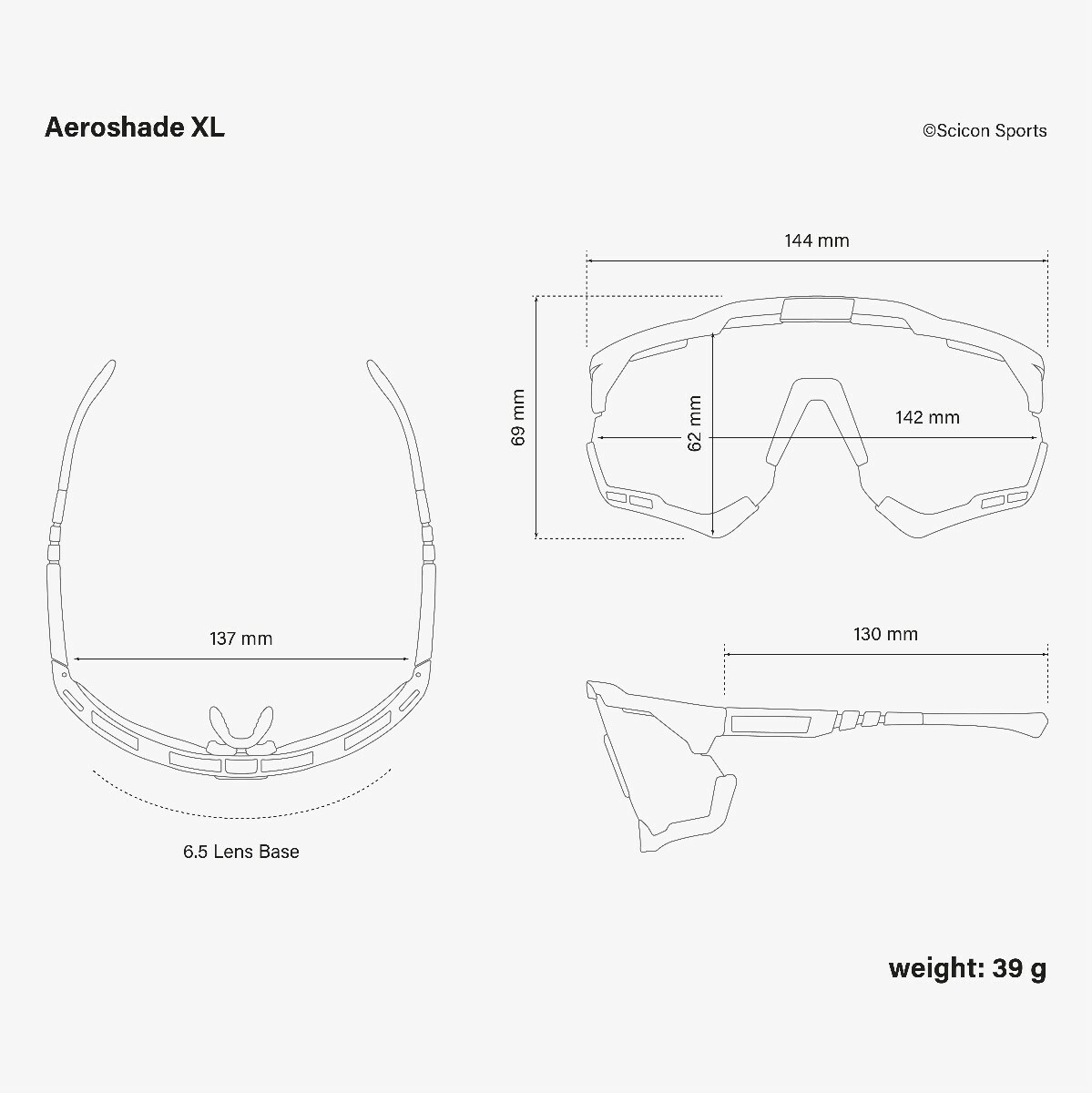 The Aeroshade features a frame equipped with Scicon Sports Horizon Adapt™ mechanism, the world’s first height- adjustable nose pad allowing riders to tailor the field of vision depending on their preferred riding position. With the simple push or pull of the Horizon Adapt™ nosepiece each rider is able to adapt the position of the lens - allowing the rider to fully focus on performance with an unobstructed view on the road. The Aeroshade features a frame design that further increases the field of vision using the Panorama Arch™.
