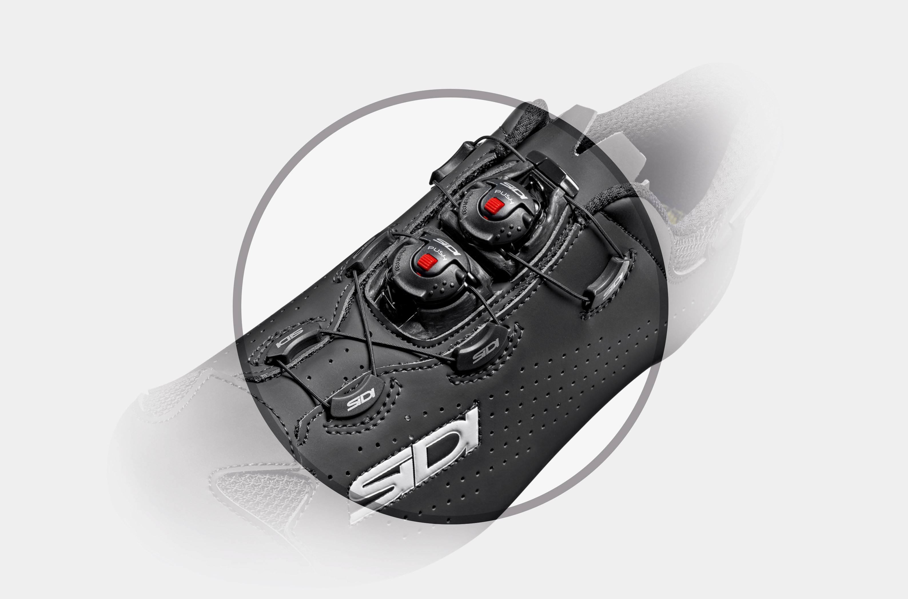 The Tecno-3 Push Flex completely eliminates the pressure zone on the instep and significantly improves the feeling of closure. Equipped with a smaller support surface on the tongue of the shoe, with a central flexing system, it manages to accompany the different needs and conformations of various cyclists, without creating areas of hyper pressure. It guarantees micrometric adjustment, tension closing / release speed and is replaceable.