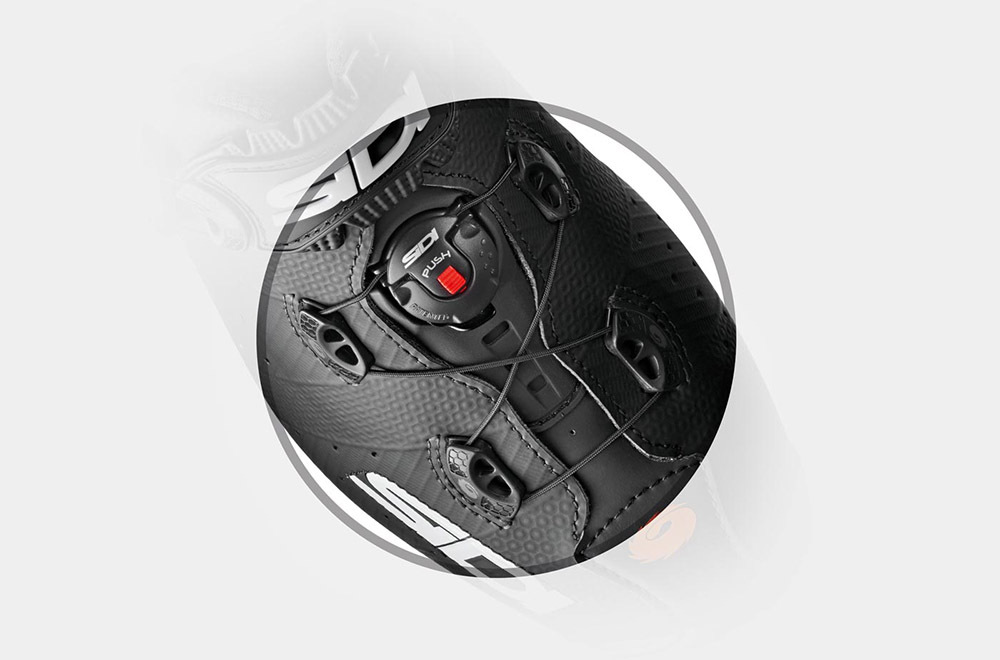 SIDI’s TECNO-3 SYSTEM dials in fit along the upper part of the feet for a customized fit. SIDI’s famously reliable and replaceable closures are improved by an all new proprietary SIDI Wire material that is completely non-binding for intuitive and effortless on-the-fly adjustments. Like most SIDI small parts, the TECHNO-3 PUSH buckle is serviceable and replaceable.