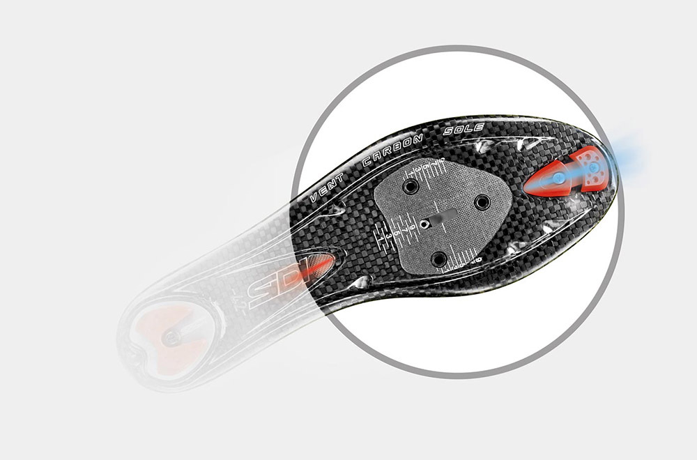 The key benefits of the VENT CARBON Sole are not only superior power transfer, because of its light weight and stiffness, but also warm weather comfort.