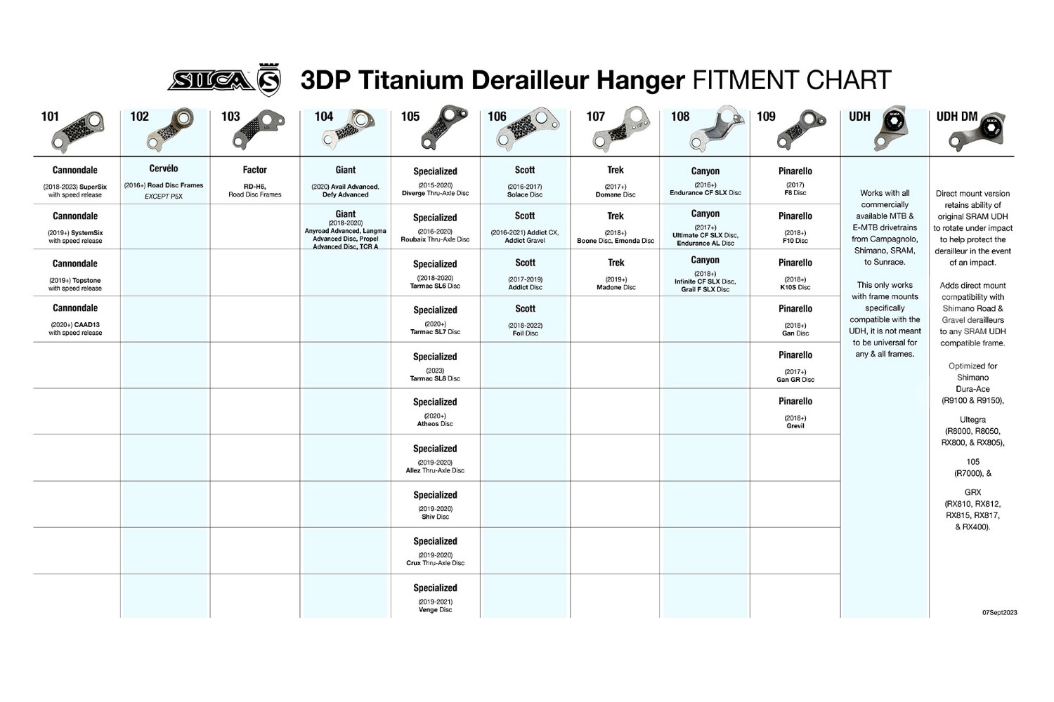 Already in use at the World Tour level SILCA 3DP Hangers were utilized in 2 stage wins of the 2023 Tour de France and are credited with maintaining derailleur alignment across numerous crashes.