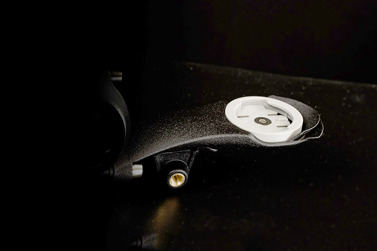 Leveraging cutting edge aerodynamic development, 3D printing, and state of the art ceramic coatings, the Chisela computer mount was born. The Chisela is aerodynamically optimized for the cleanest possible airflow under both the Wahoo and Garmin computers and features a unique 'T-Tray' mounting system inspired by the T shaped underfloor of an F1 car. This T-Tray mounting system allows for quick-release style attachment of lights or cameras underneath the mount, just slide and click to mount and then pull on the lever and slide off to dismount.
