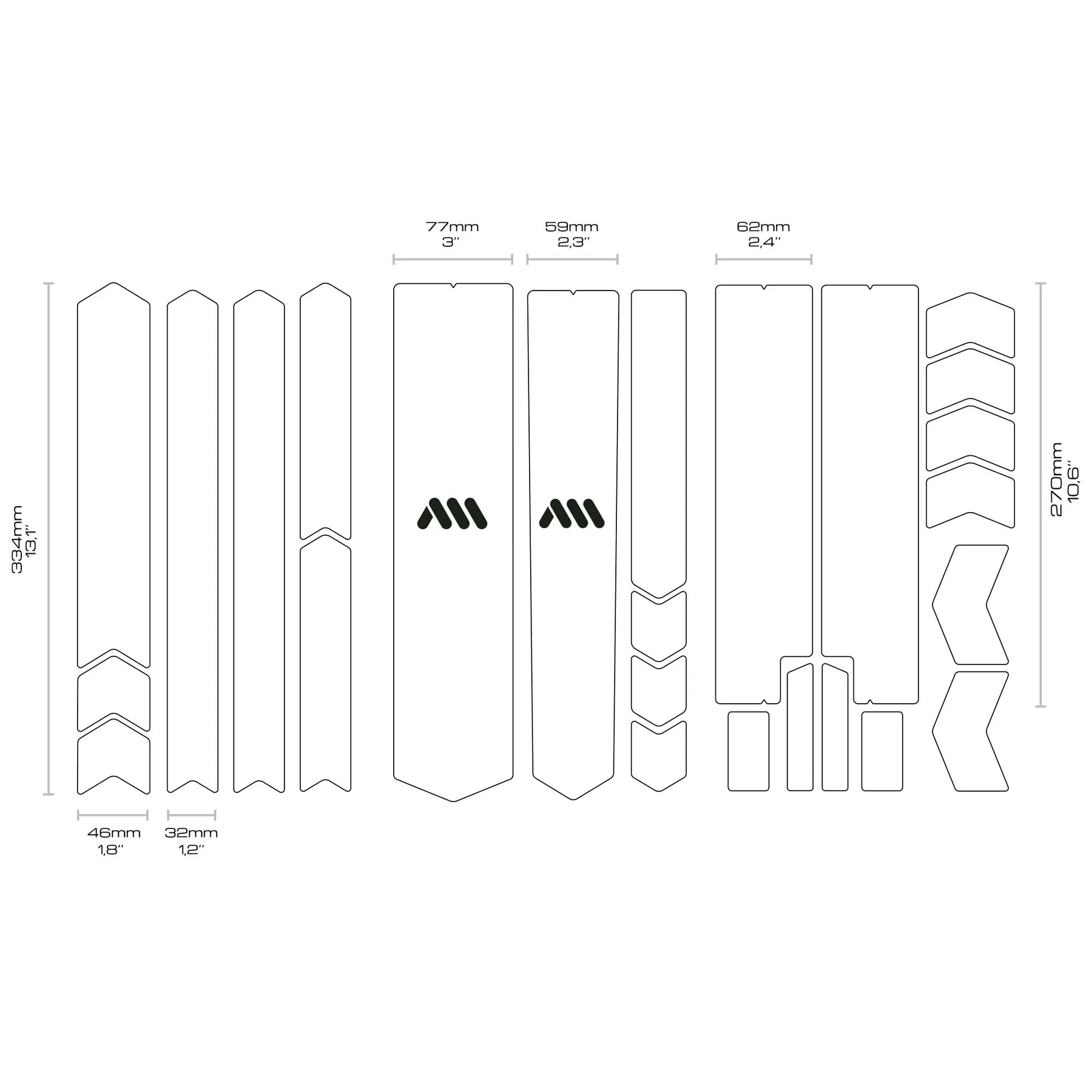 Protects your full frame (main triangle, stays and other areas) and your fork with a single kit