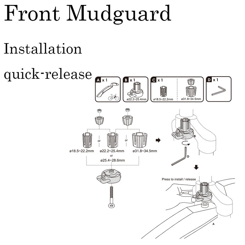 Fit to bottom of inner-crown in fork : 18.5mm ~ 34.5 mm