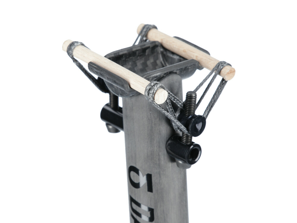 全新設計的夾緊系統由兩個輕量的Dyneema®環製成。這非常重要地減輕了座杆/夾緊系統的頭部的重量。該系統適用於任何類型的導軌,包括橢圓形碳纖維導軌(7 * 9mm)。