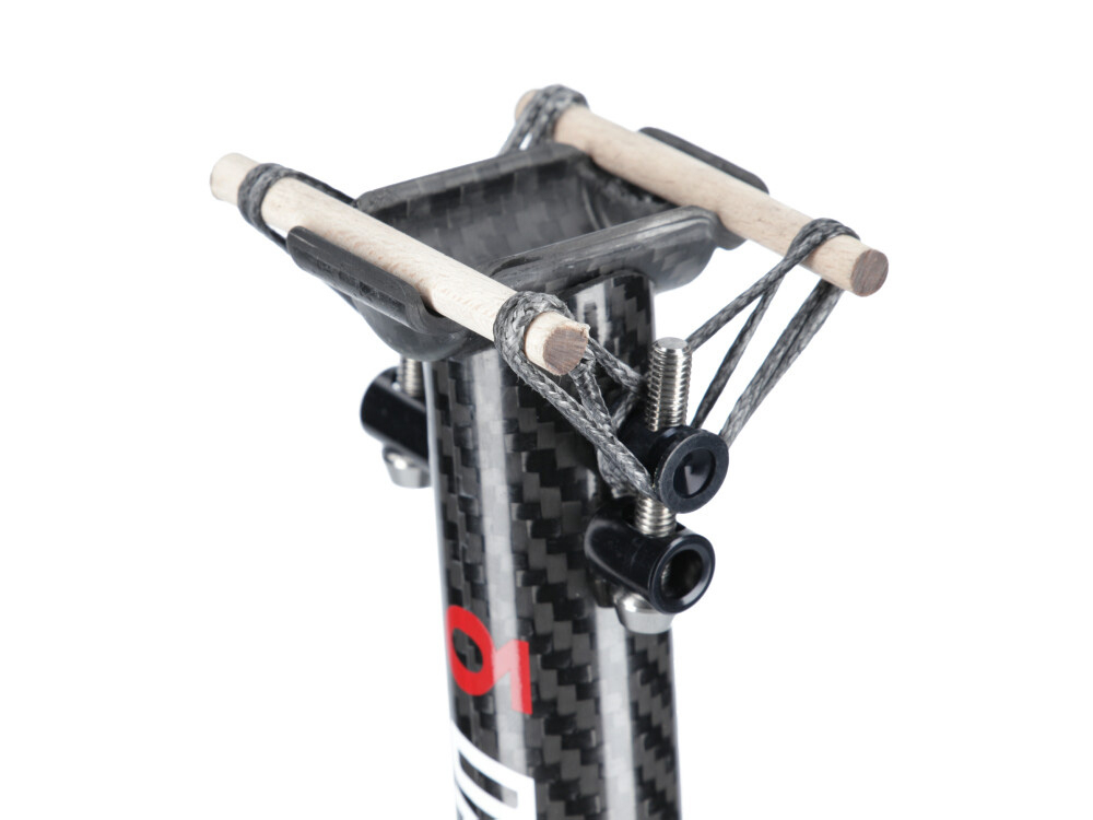 Darimo T1座杆由碳纖維製成,使用雙向和單向織物以及經過研究的不對稱層壓材料,以實現最小重量和最大抗震的最佳組合。每根座杆都是手工層壓的,以達到創紀錄的重量,同時維持強度和騎士的安全性。為此,座杆的每個點上都有各種碳纖維層排列。經過有限元分析和破壞性測試後,才能生產製作。