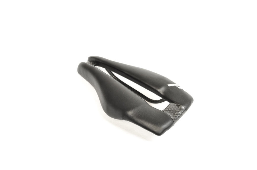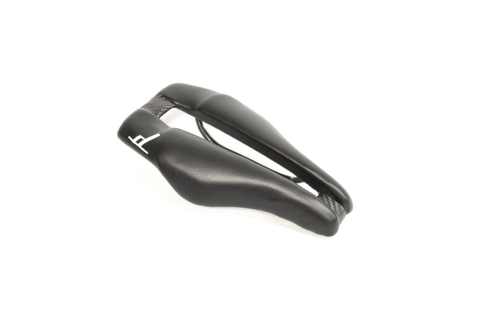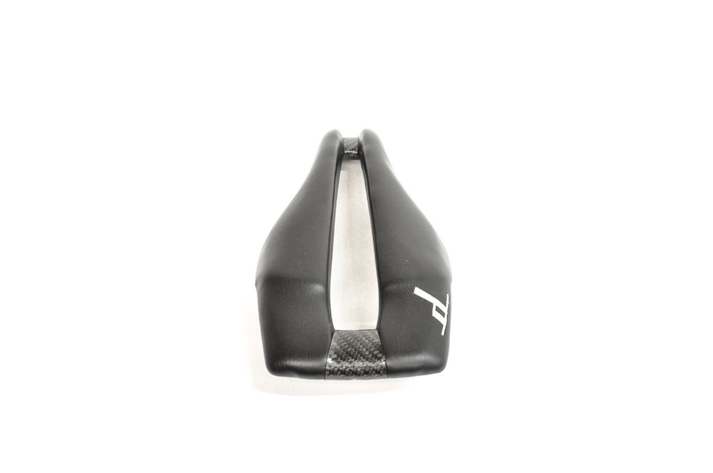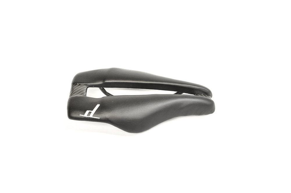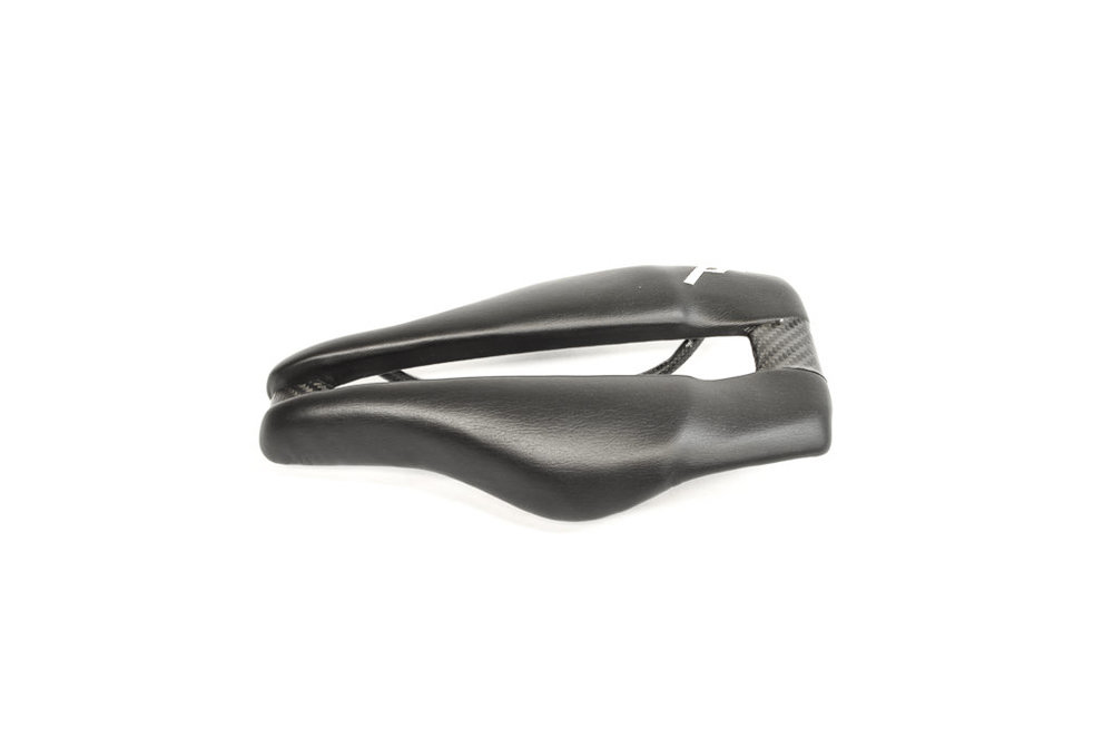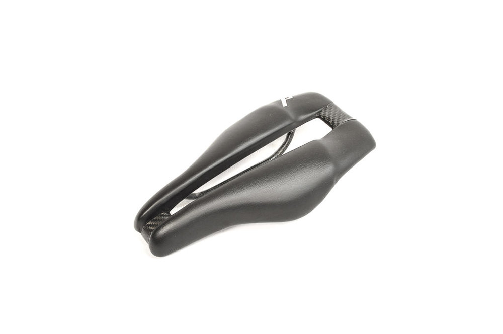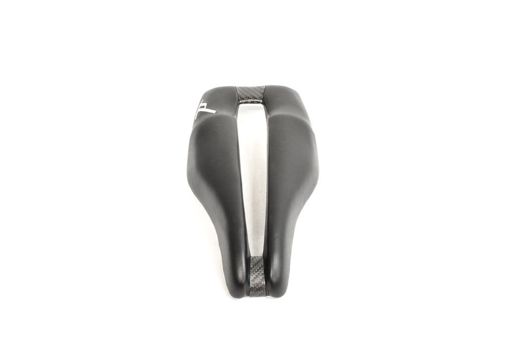 Strike 这款无鼻全碳纤维坐垫。它有着中空的皮质表面。经过强化后的碳纤维层,能够承受住我185磅的体重,并且仅重111克。