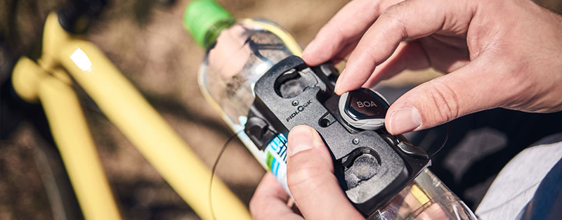 通過使用FIDLOCK創新的TWIST技術,完美結合了FIDLOCK多年來磁性和彈簧鎖系統的優點。只需將水壺靠近安裝在車架上的支架,水壺就會被支架內的磁鐵吸入,聲響亮的哢噠聲告訴我們水壺現在鎖定到位。而只需通過順時針旋扭轉動作,就能輕鬆地取下水壺和其他配件,即使在騎行時也可以通過使用支架的磁吸力將其放回原位,現代科技感十足,從此在騎行間提取水壺變得無比方便!