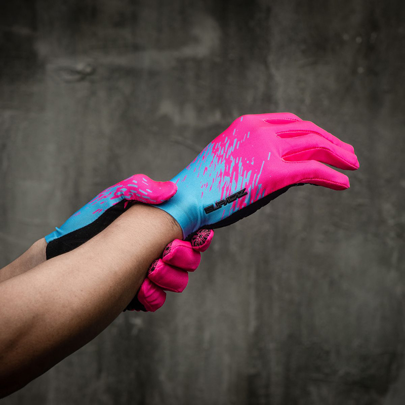 Supacaz標誌性的Oil Slick顏色設計,貫徹了SUPACAZ其繽紛色彩,獨樹一幟的品牌特色,手套的手背面料具有特色的反光性,如果您在黑暗中騎行能呈現7彩絢麗的顏色,充滿個人風格!
