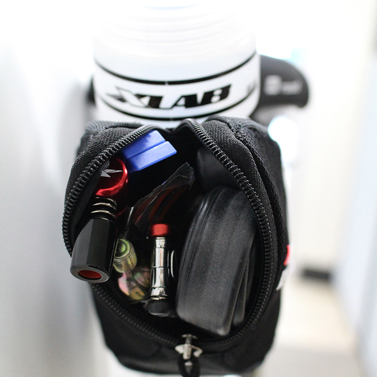 Single rear systems are very popular thesedays, but the one problem with them is finding a way to store your repair kit.NOT ANYMORE! XLAB has designed the 1st aerodynamic repair storage bag for thesesystems. This patent-pending design looks compact & sleek, but at the sametime will carry a great deal of essential repair tools.